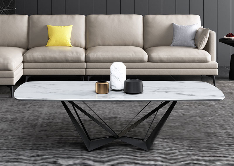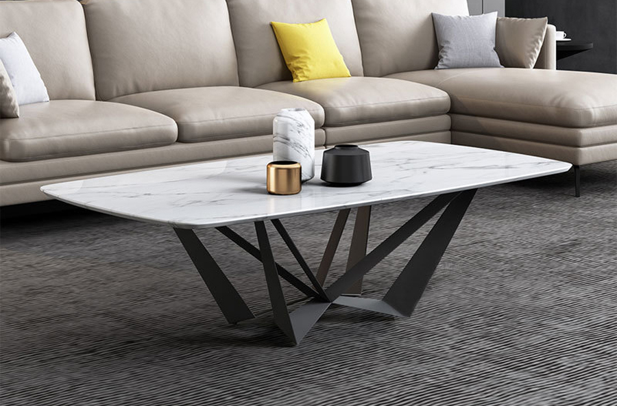 Thiết kế bàn trà BT05 nổi bật với mặt đá trắng sáng . Chất liệu chân sắt phun tĩnh điện màu đen mang đến sự chắn chắn. Điểm đặc biệt của BT05 là phần chân bàn là những đường vát đan xen độc đáo, mới lạ, thể hiện đẳng cấp gia chủ.
