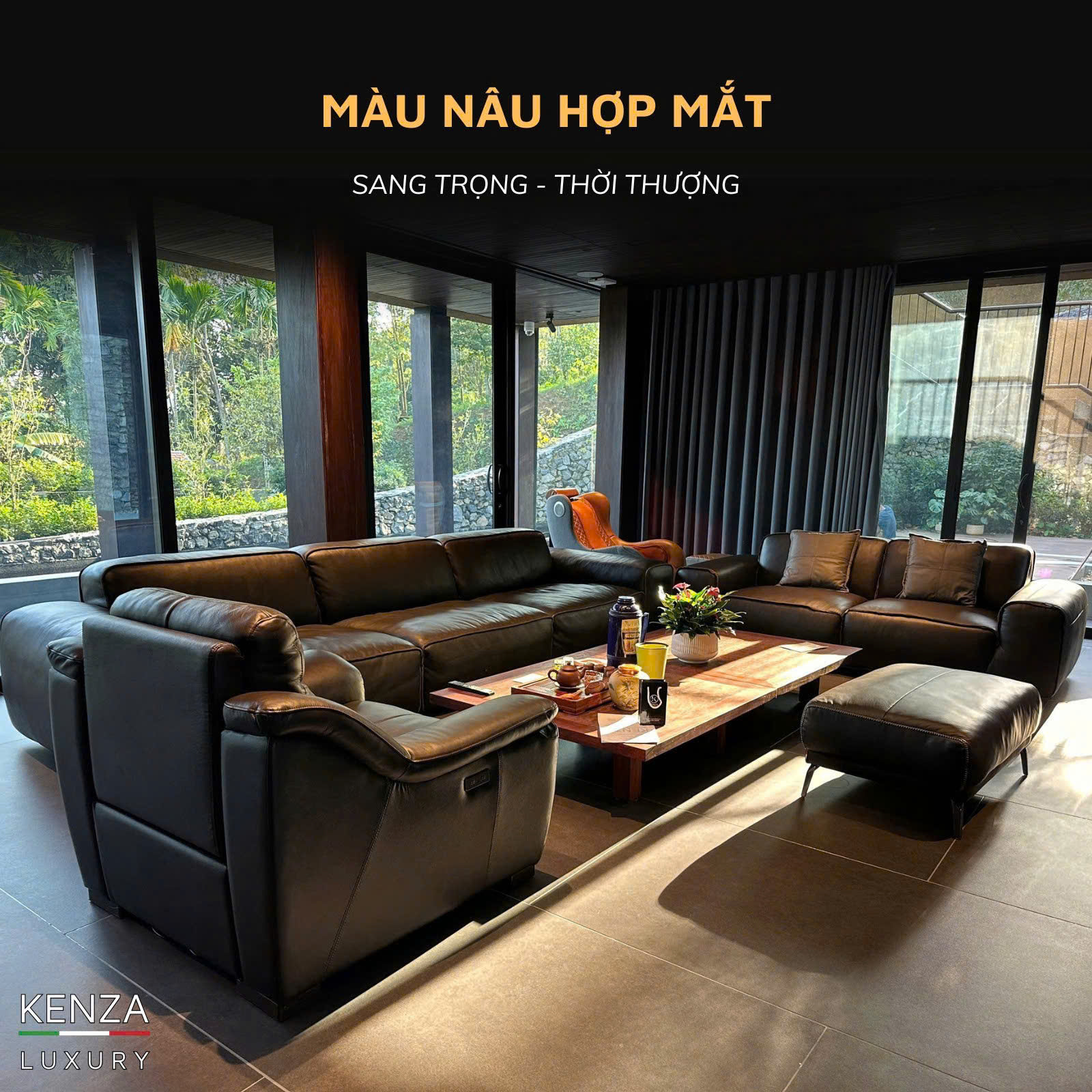 Sofa Kenza vừa hoàn thiện và bàn giao sofa Boston màu nâu trầm cho khách hàng tại TP. Hòa Bình. Bộ sofa giúp không gian phòng khách trở nên ấm cúng, hiện đại và toát lên vẻ sang trọng đúng chất nghỉ dưỡng cao cấp.