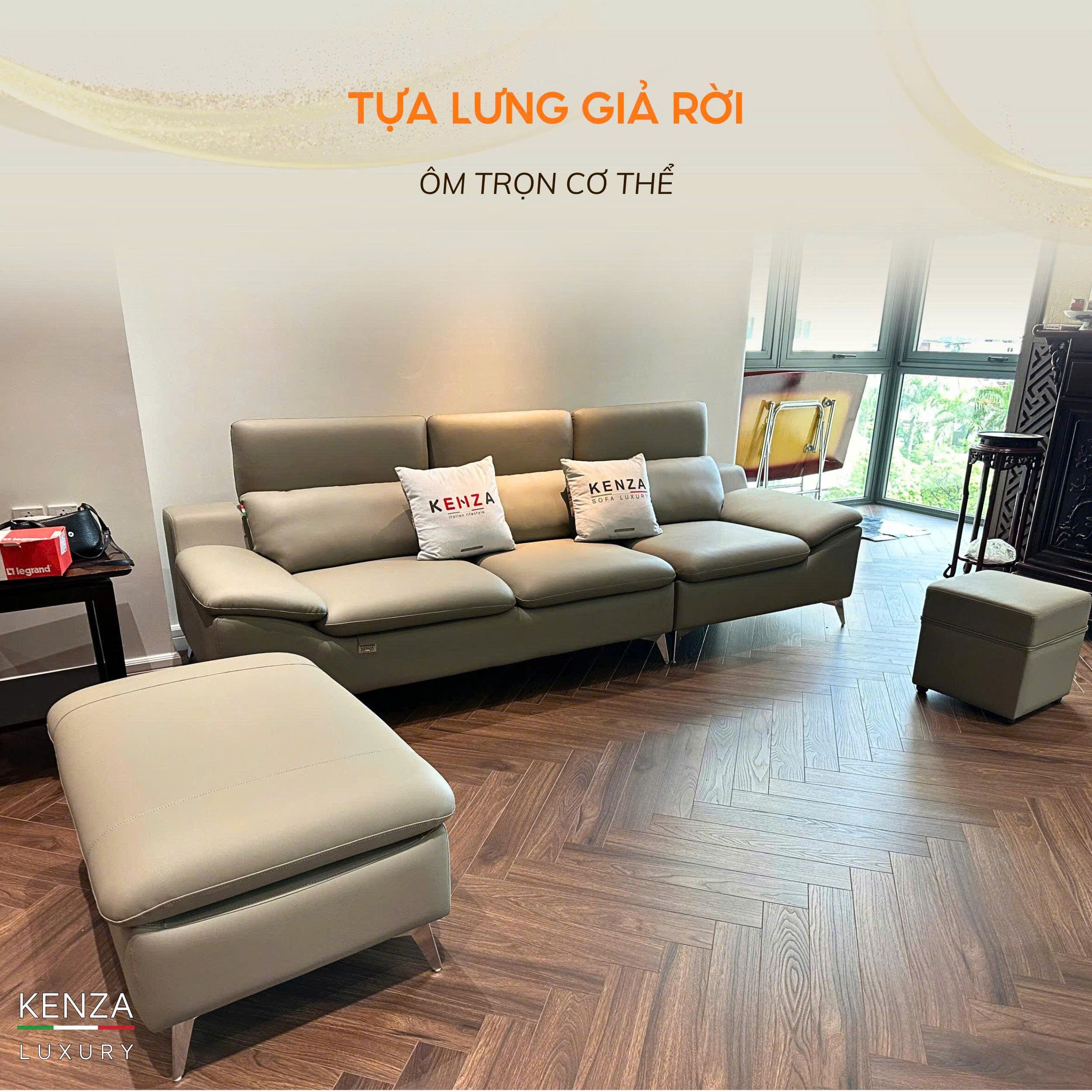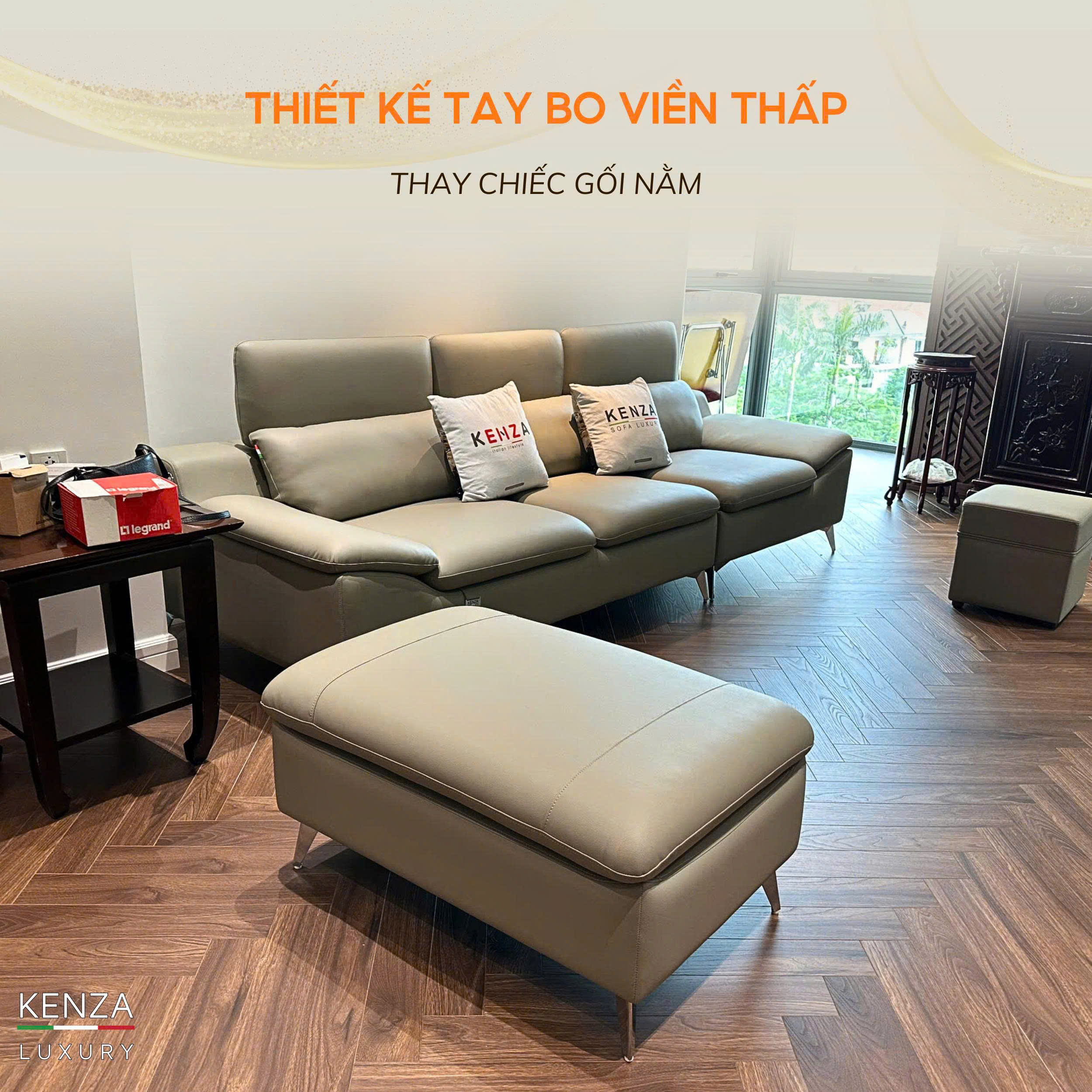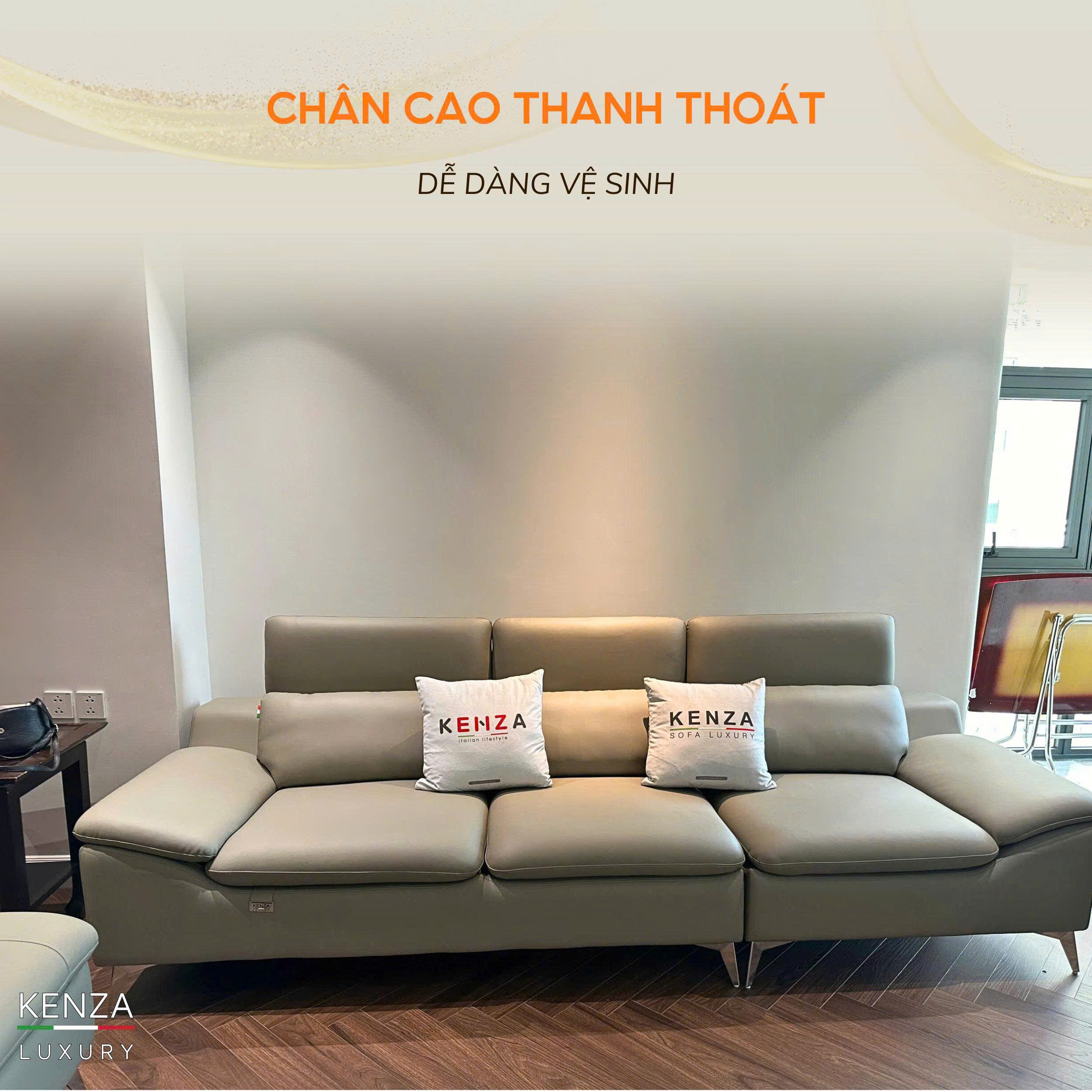 Sofa M7223 được Kenza bàn giao cho khách hàng tại KĐT Ciputra gây ấn tượng mạnh nhờ thiết kế sang trọng và tinh tế. Phần chân cao thanh thoát không chỉ làm cho bộ sofa trở nên nhẹ nhàng mà còn tạo cảm giác thoáng đãng cho toàn bộ không gian. Đây cũng là lý do nhiều gia đình lựa chọn sofa chân cao hiện đại để tối ưu thẩm mỹ và tiện ích sử dụng.